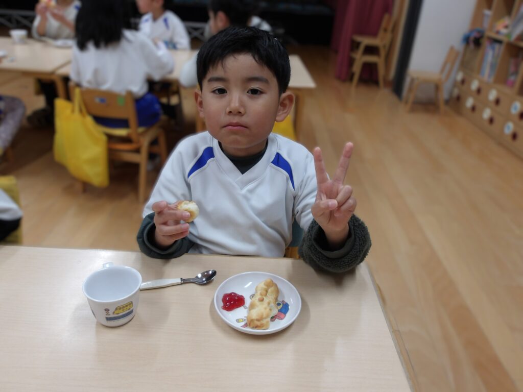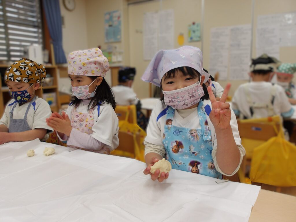 保育園生活最後のクッキングで、パンとクッキーを作りました。