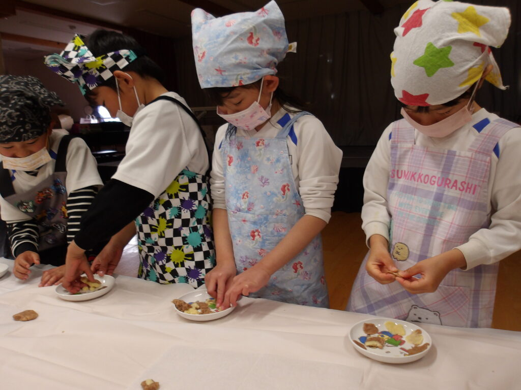 クッキー作りでも今年は型を使わず、自分で好きな形を作りましたよ。「クッキー作りを最後にみんなでできて、良かった~!」と嬉しそうな子どもたちを見て、こちらもとても嬉しい気持ちになりました。