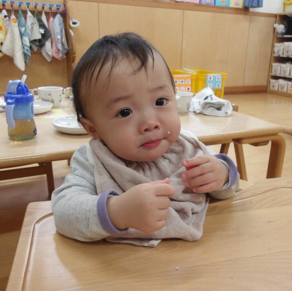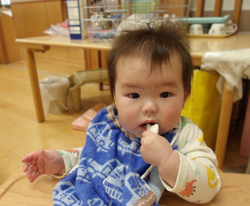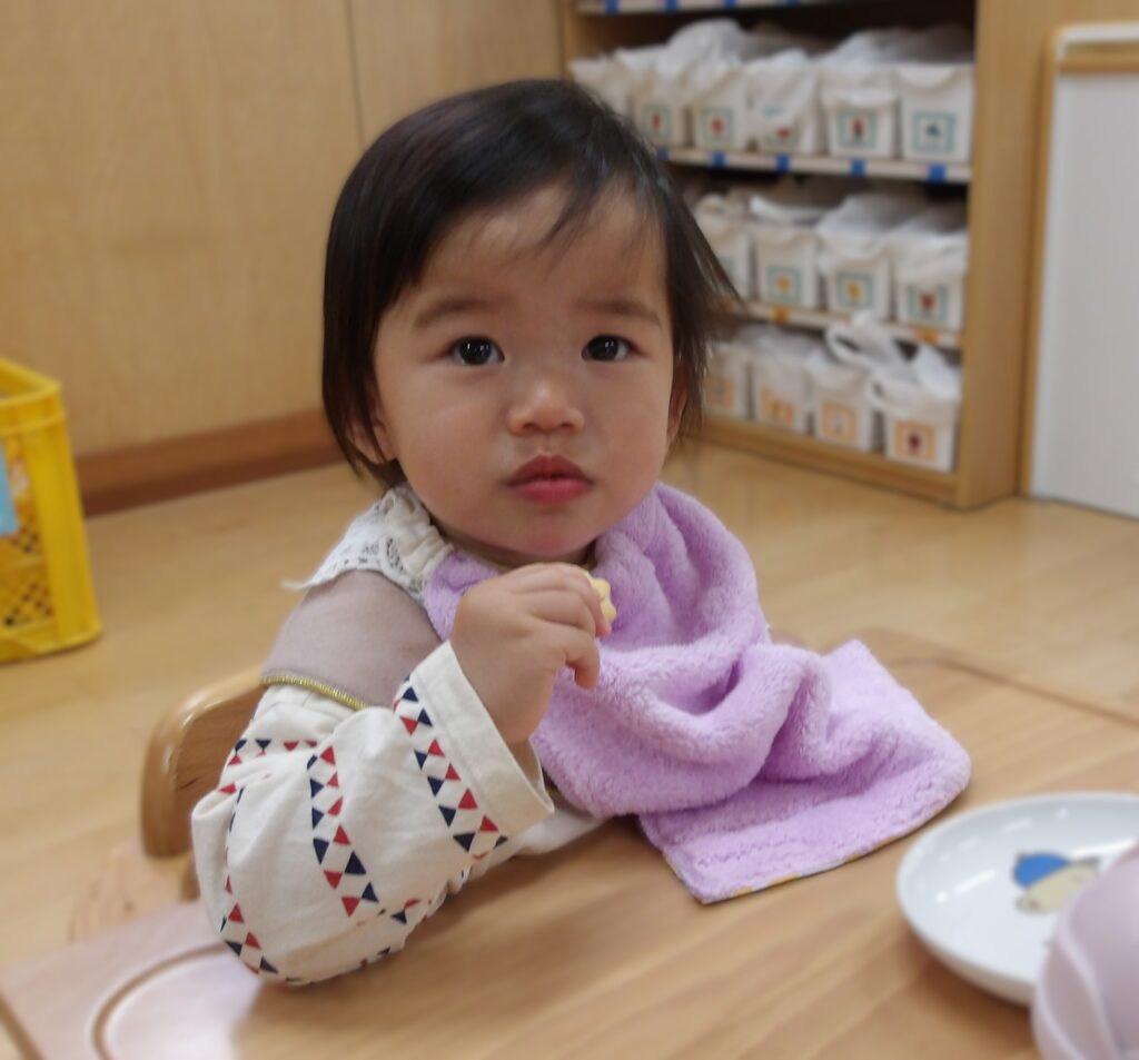 朝のおやつをモリモリ美味しそうに食べる姿がとても可愛いらしいです。