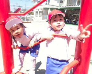 10月は沢山散歩に出掛けて秋探し‼拾ってきたどんぐりで「どんぐりごま」や「どんぐり迷路」を作りました。園庭では全身を使ってフラフープやサーキット遊びを楽しんでいます。