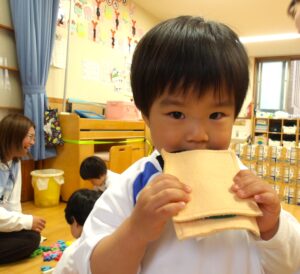 今日はきりん組とらいおん組のお友だちがおやつのおにぎり作りをしました。「どんな形にしようかな?丸!三角!ハートにする!」と自分たちで決めて楽しくおにぎりを作る姿が見られました。自分で作るおにぎりは一段と美味しく可愛い笑顔 […]